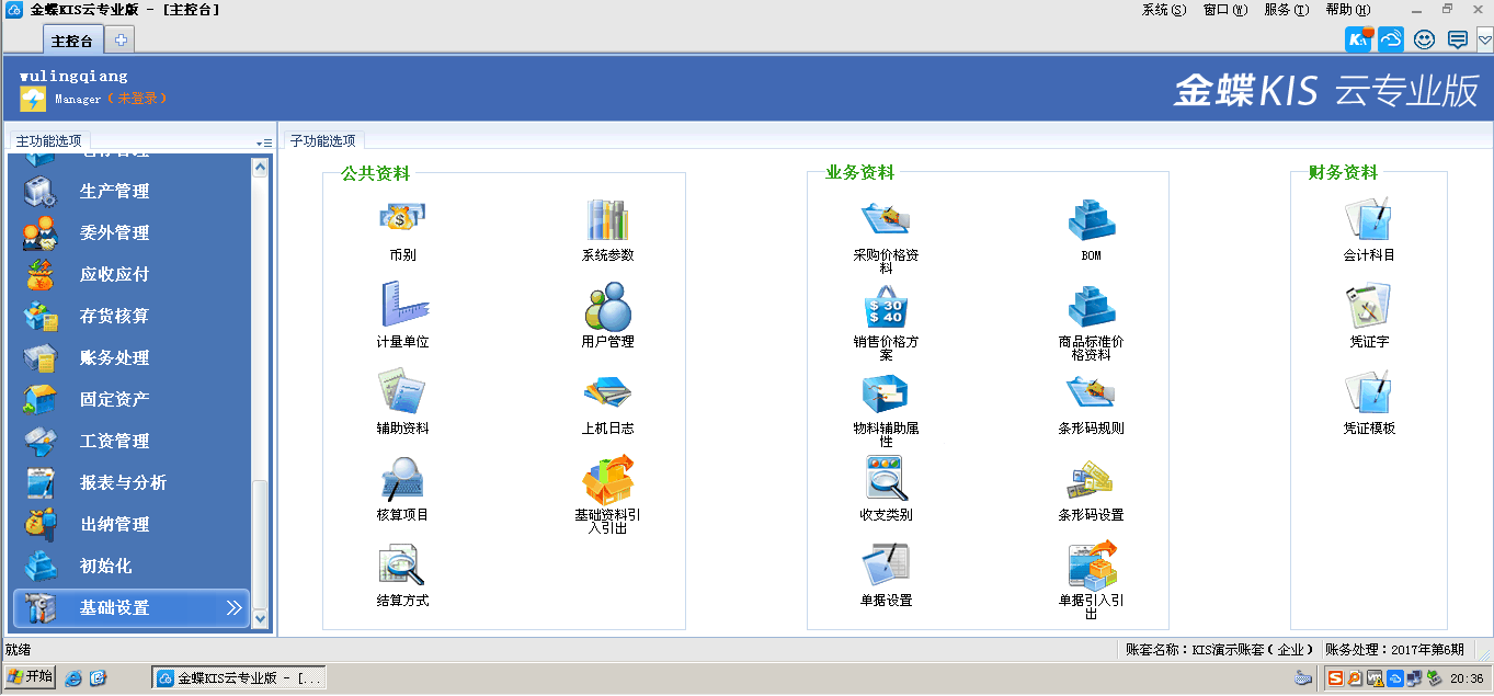步骤一、在全部核算项目界面,然后单击【物料】,点管理