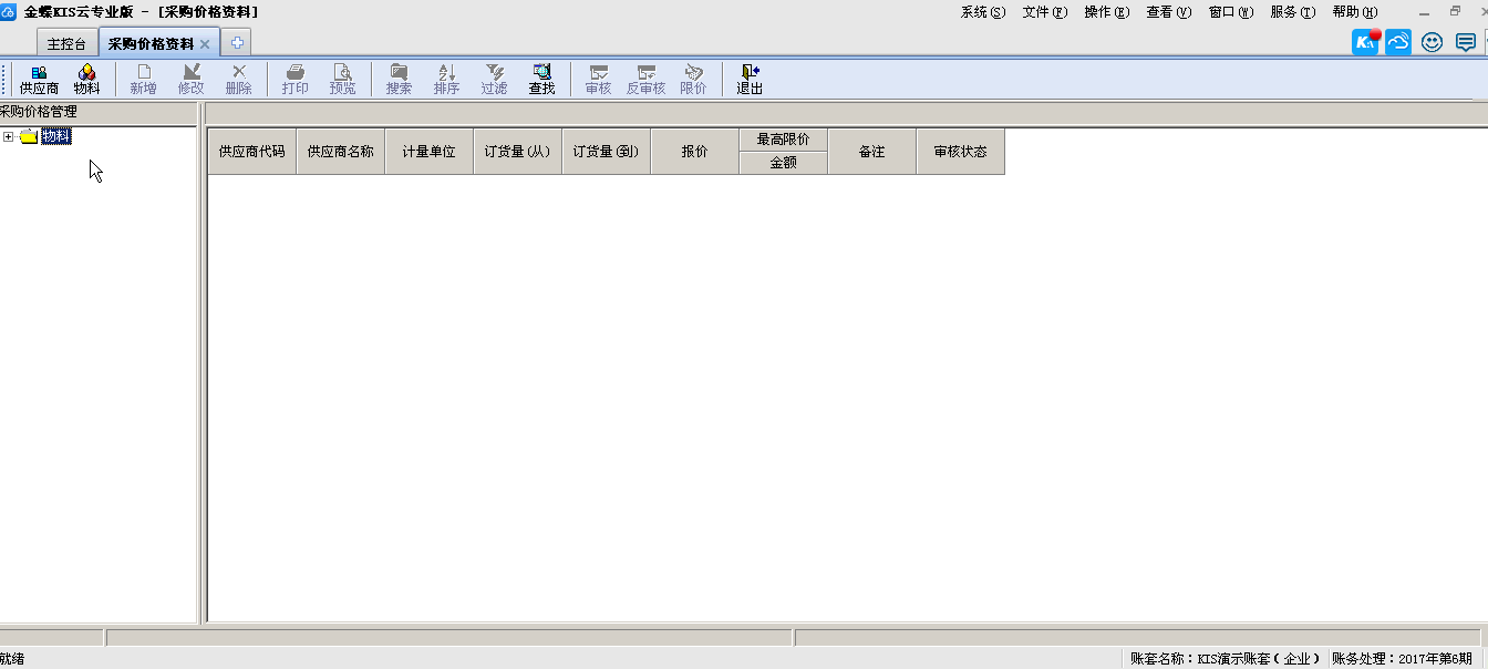 价格资料引入进去之后,系统默认是非审核状态的,按shift键进行全选之后,选择审核即可。
